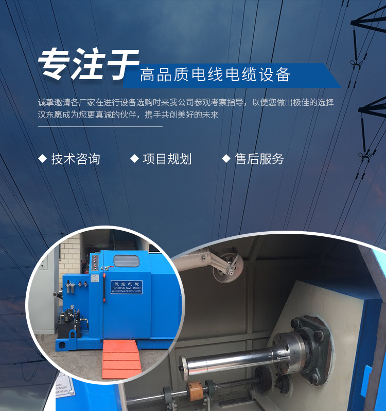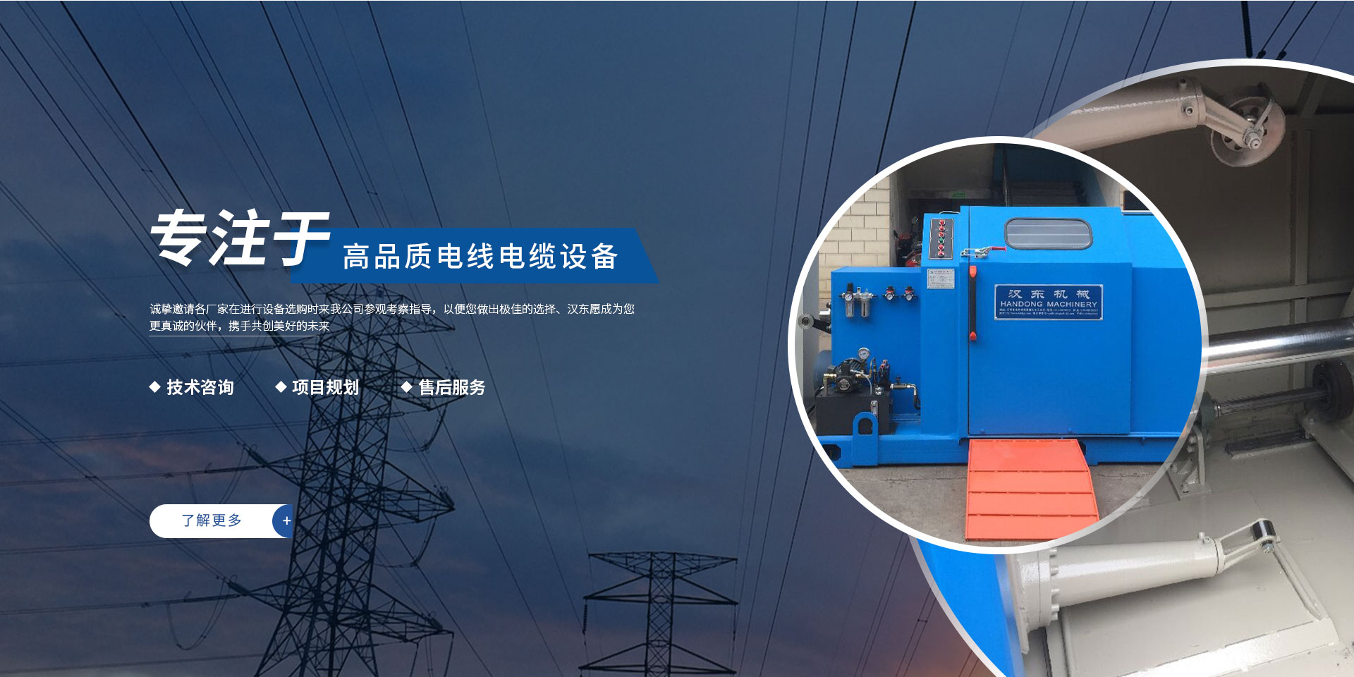 常州漢東機(jī)械始創(chuàng)于2006年,是集電線電纜機(jī)械設(shè)計、開發(fā)、制造、安裝、調(diào)試為一體化的高科技企業(yè)。本公司自開業(yè)以來,積極引進(jìn)日本,歐美等國外電線電纜設(shè)備之先進(jìn)技術(shù),先后成功推出了達(dá)到行業(yè)先進(jìn)水平的電線電纜設(shè)備,主要產(chǎn)品有擠出、繞包、束線、成纜等電線電纜固定設(shè)備。在提供系統(tǒng)設(shè)備的同時,還向客戶提供售前技術(shù)咨詢、項目規(guī)劃、以及售后服務(wù)。我公司本著“以人為本、科技先導(dǎo)、用戶為上”的宗旨,為客戶提供牢靠的產(chǎn)品與省心的服務(wù)。漢東愿成為您更真誠的伙伴,攜手共創(chuàng)美好的未來!